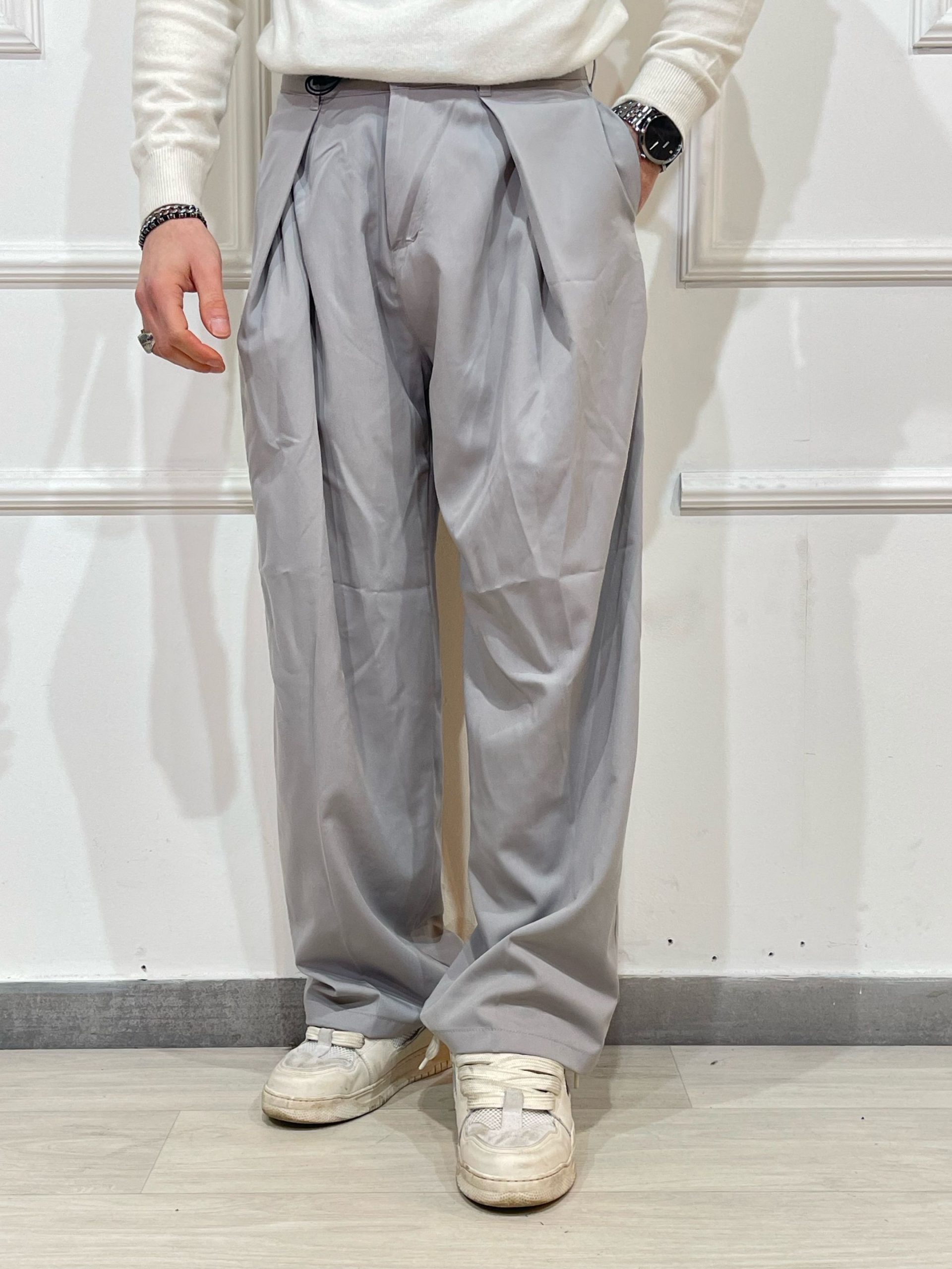 Durch den elastischen Bund sitzt die Hose bequem, während der mitgelieferte Gürtel dem Outfit zusätzliche Struktur gibt.
